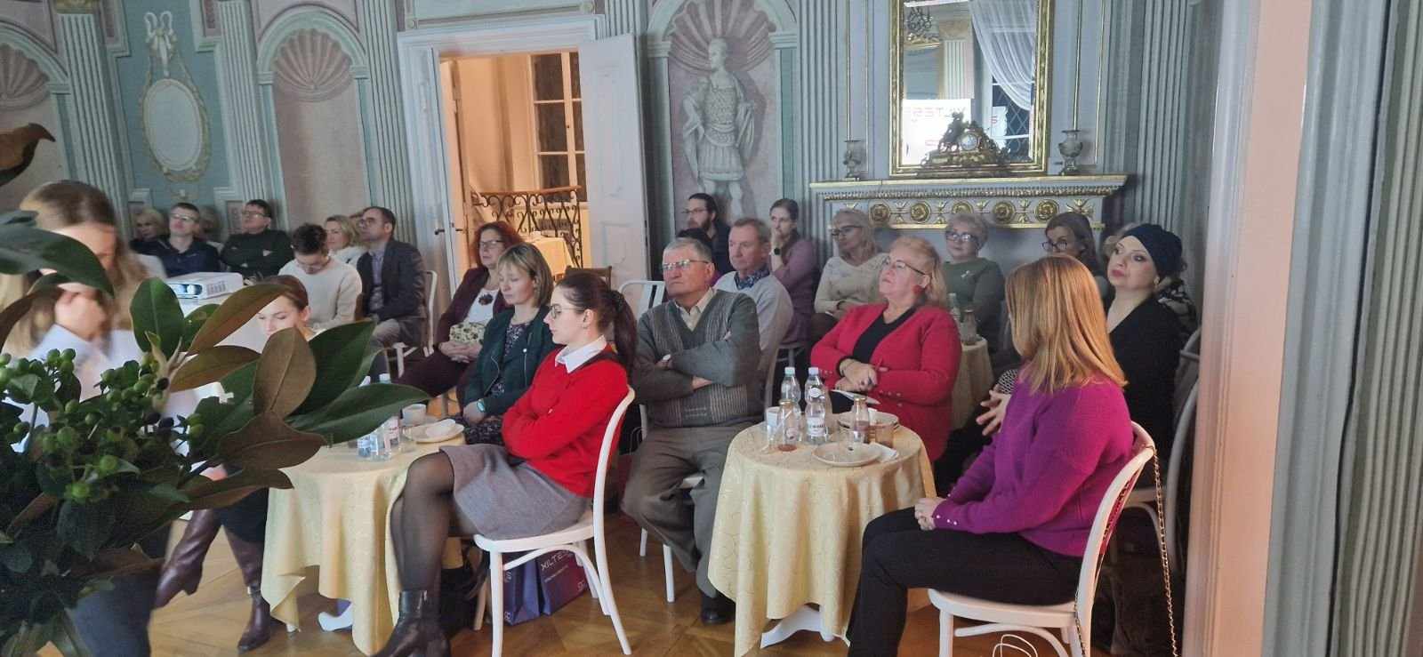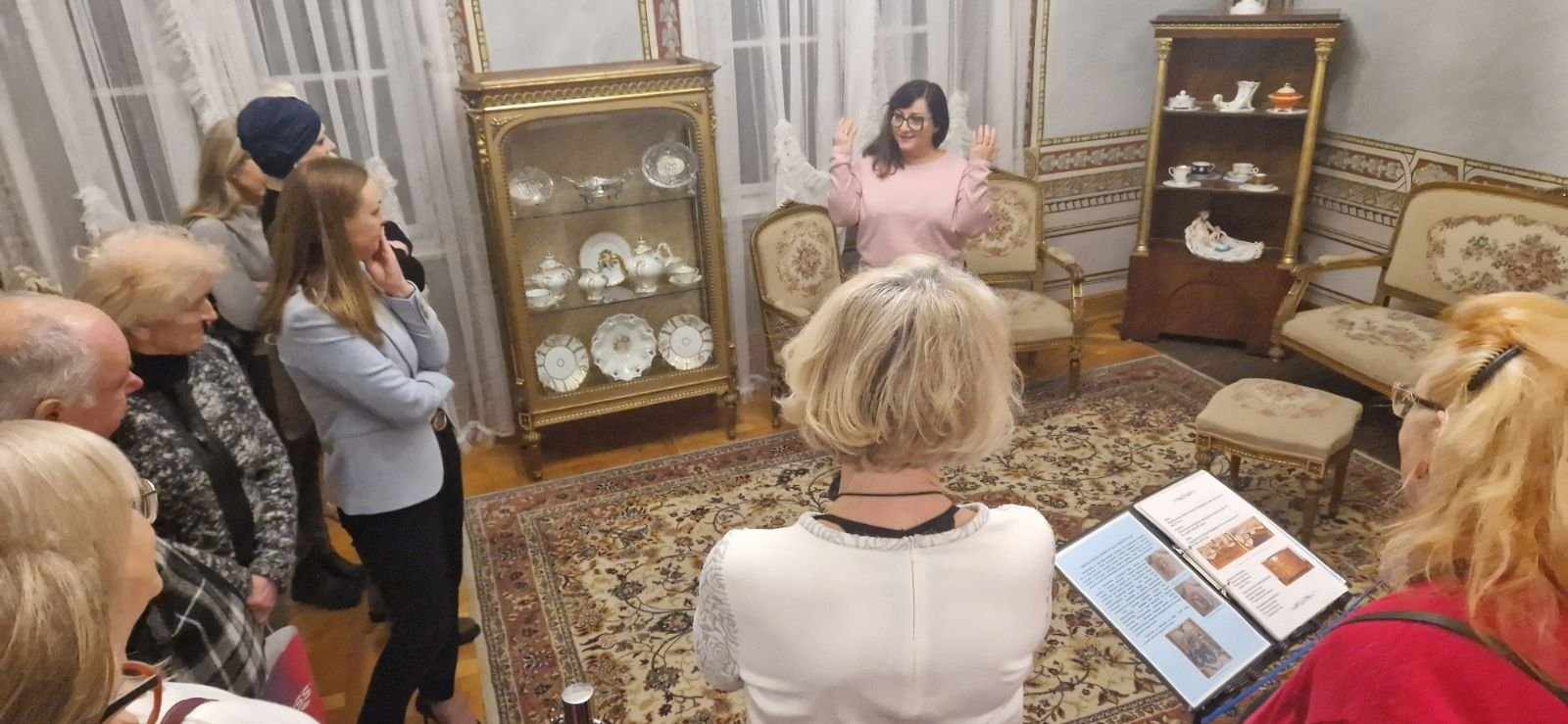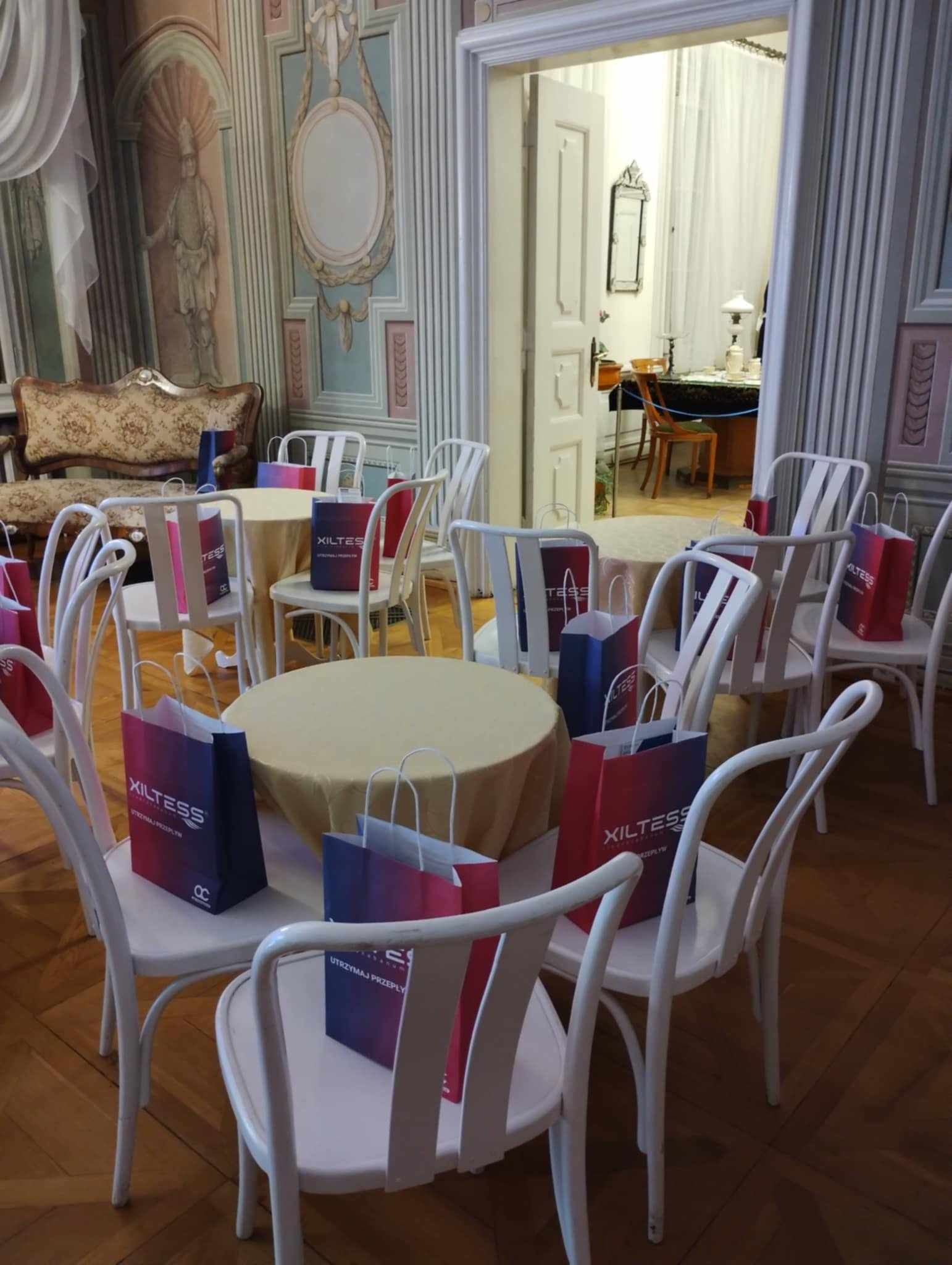 Na życzenie firmy oprowadzamy naszych gości po obiekcie. Ostatnio, w godzinach wieczornych, w sali balowej pałacu odbyła się konferencja branżowa, po której jej uczestnicy wzięli udział w oprowadzaniu po stylowych, pałacowych wnętrzach.