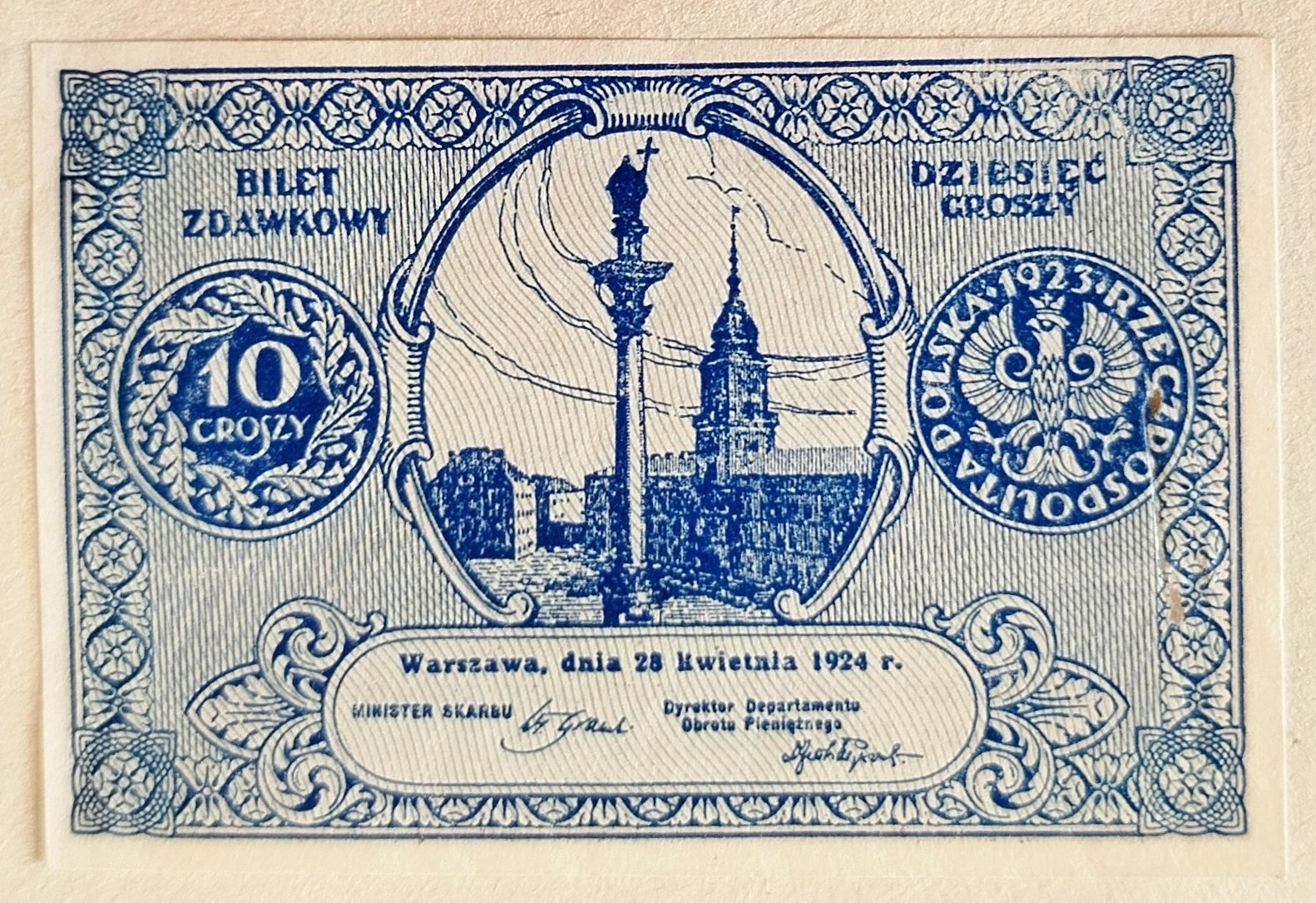 Ilustracja: Bilet zdawkowy o nominale 10 groszy, 1924 r. Zbiory Muzeum Zagłębia w Będzinie.