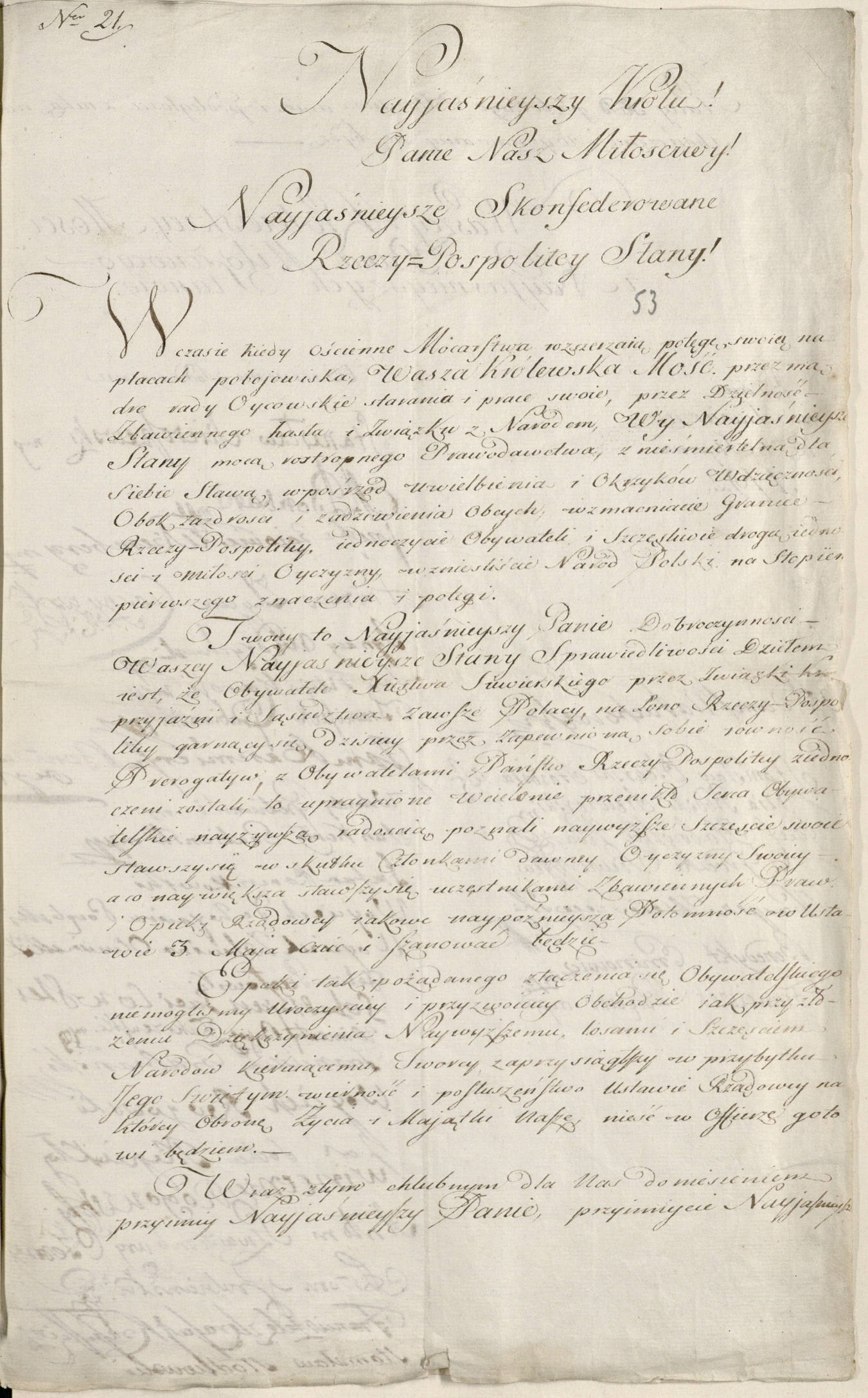 List szlachty siewierskiej do króla Stanisława Augusta Poniatowskiego z deklaracją poparcia dla Konstytucji 3 Maja, 01.01.1792 r. Zbiory Biblioteki Uniwersytetu Warszawskiego w Warszawie.