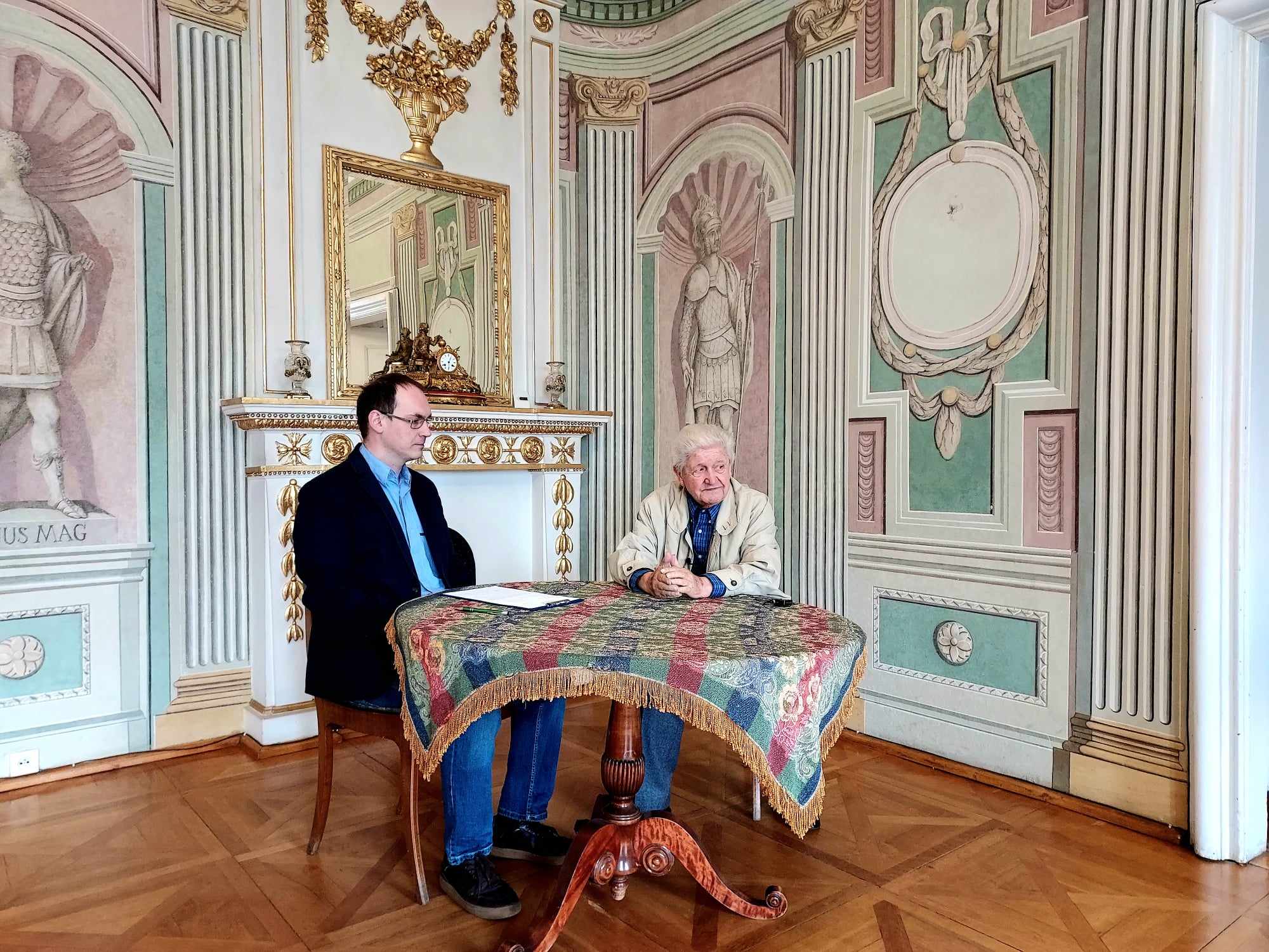 14 maja br. w Pałacu Mieroszewskich w Będzinie odbyło się pierwsze nagranie w ramach realizacji nowego projektu „Będzińskiego Depozytu Pamięci”, którego celem jest zainteresowanie lokalnej społeczności szerzej pojętą historią Będzina – poprzez osobiste wspomnienia, opowieści, dokumenty i wywiady.