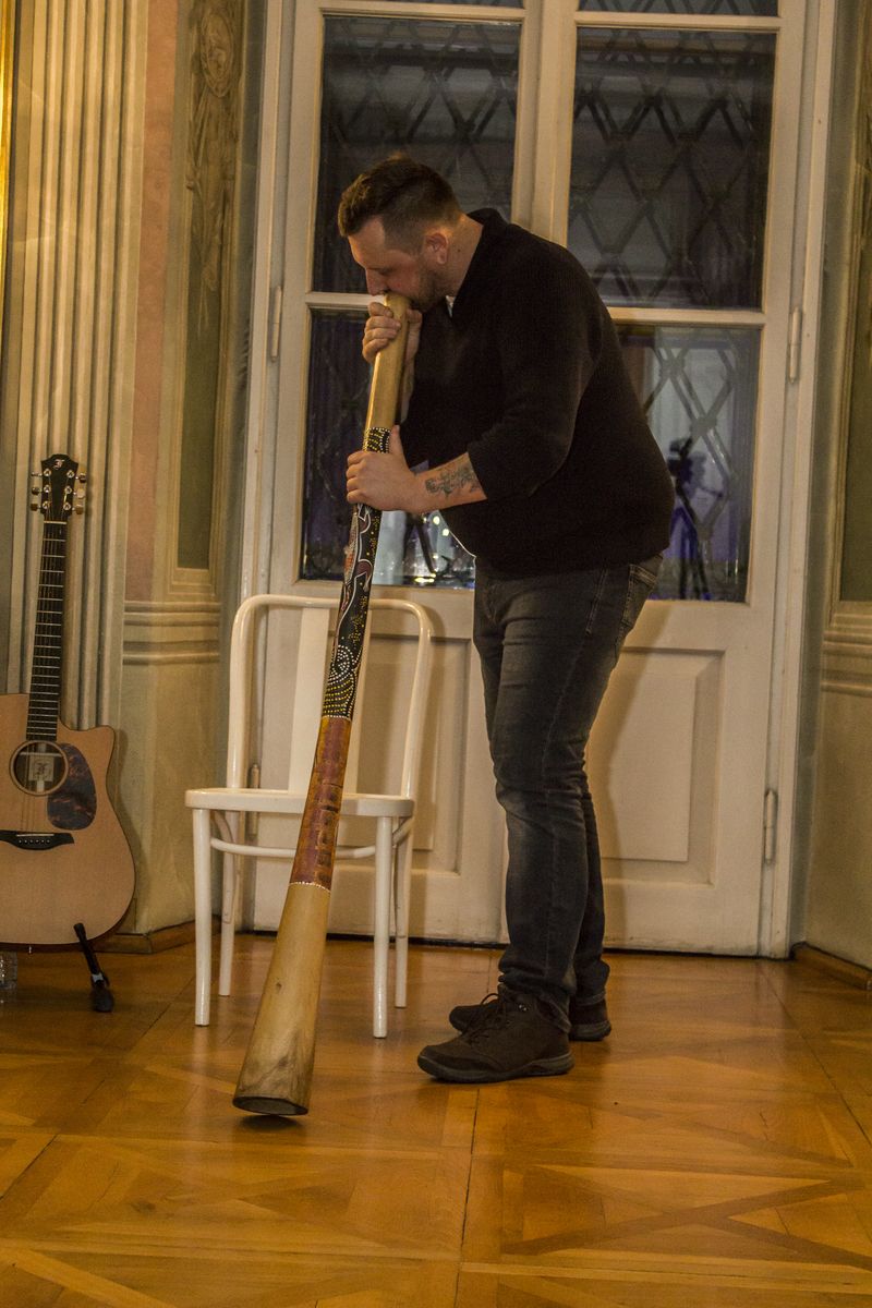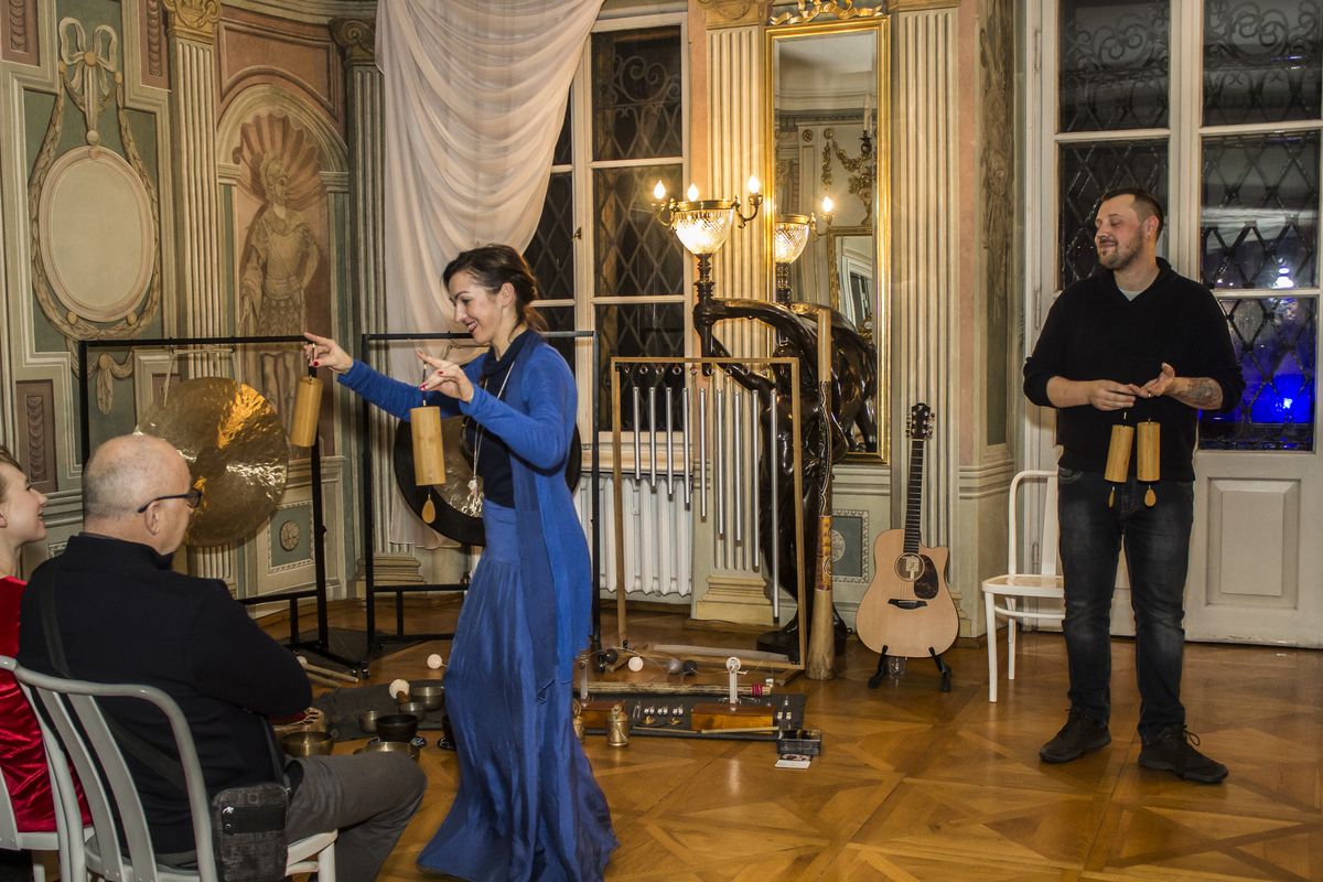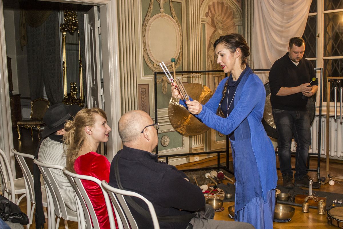 Niespodzianką podczas finisażu było spotkanie z wykonawcami projektu Harmonia Sfer. Muzycy poprzez dźwięki orientalne, wykonane za pomocą nietypowych przedmiotów i instrumentów, wprowadzili gości w niezwykły, magiczny klimat.