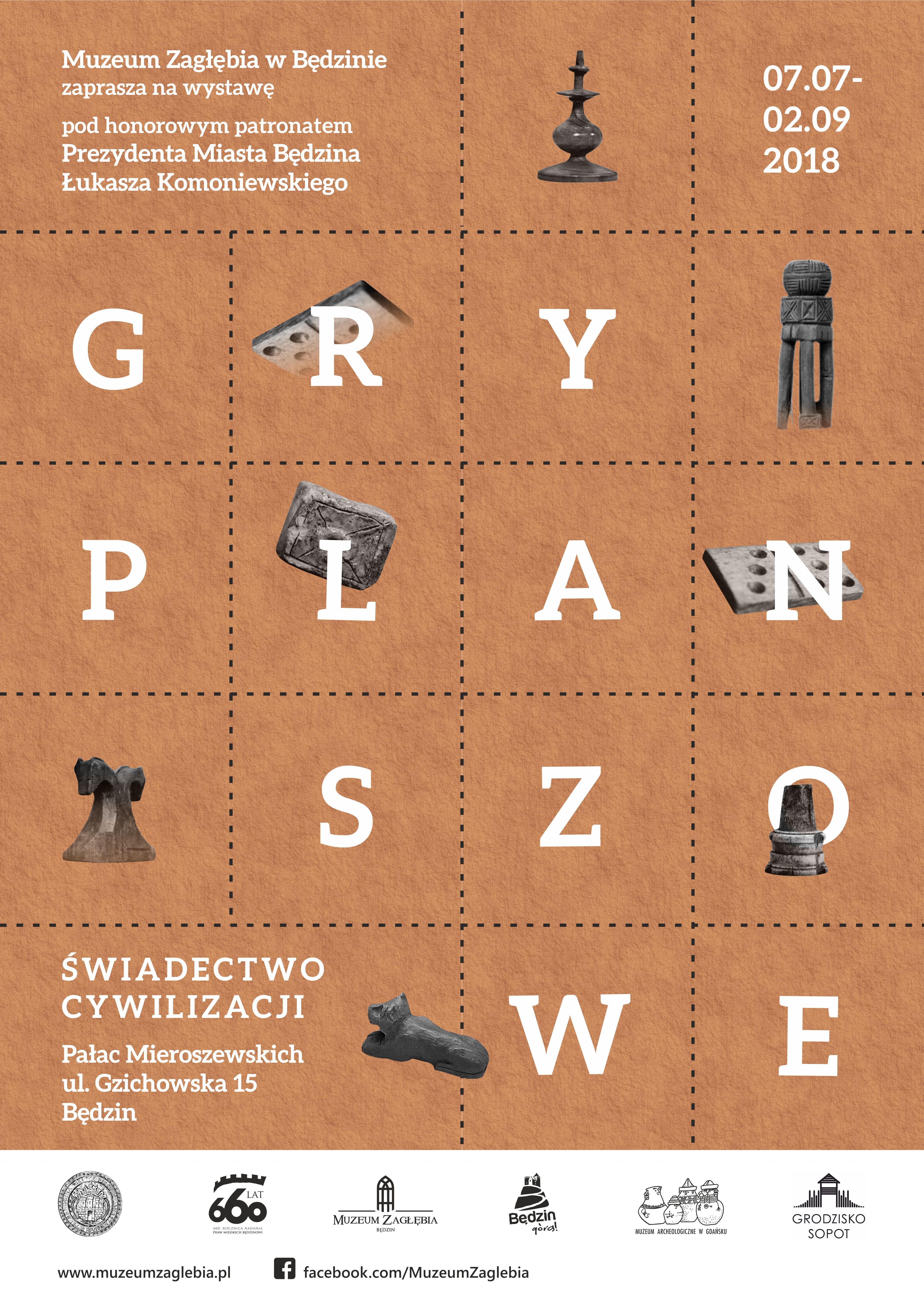 Muzeum Zagłębia w Będzinie zaprasza na wystawę „Gry planszowe. Świadectwo cywilizacji” pod honorowym patronatem Prezydenta Miasta Będzina Łukasza Komoniewskiego. Wystawa ze zbiorów Muzeum Archeologicznego w Gdańsku prezentowana będzie w Pałacu Mieroszewskich, w terminie od 07.07.2018 r. do 02.09.2018 r.