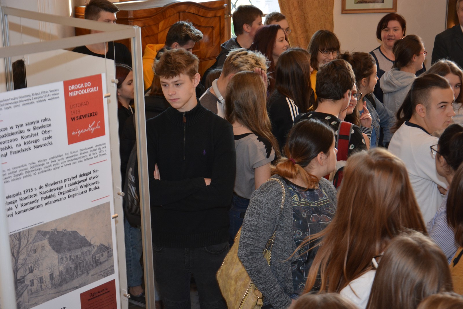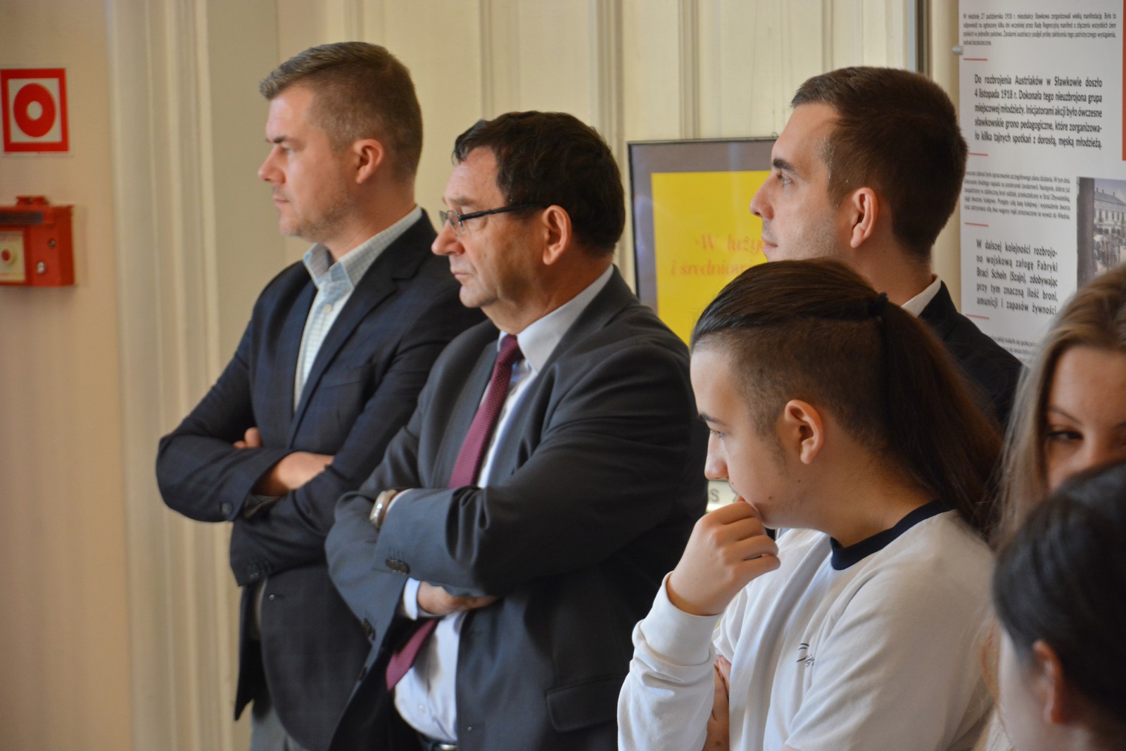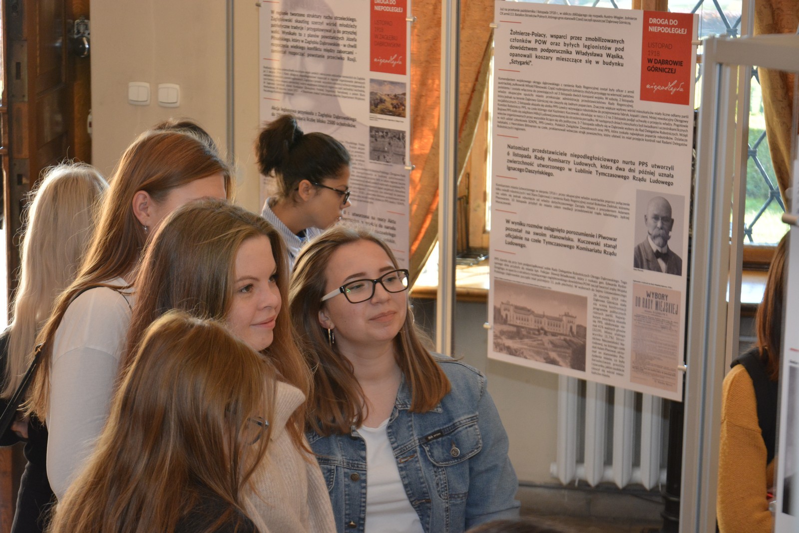 W ramach otwarcia wystawy licznie przybyła młodzież mogła wysłuchać prelekcji przygotowanej przez historyka Muzeum Zagłębia w Będzinie dr Marcina Rudego pt. „Droga Będzina do niepodległej Polski”.