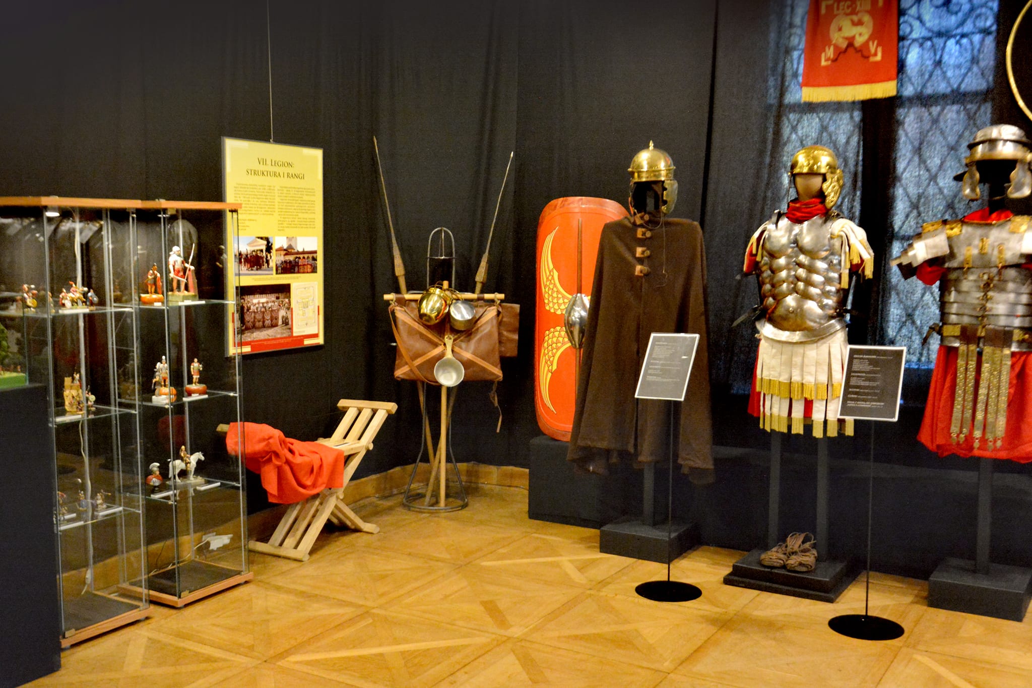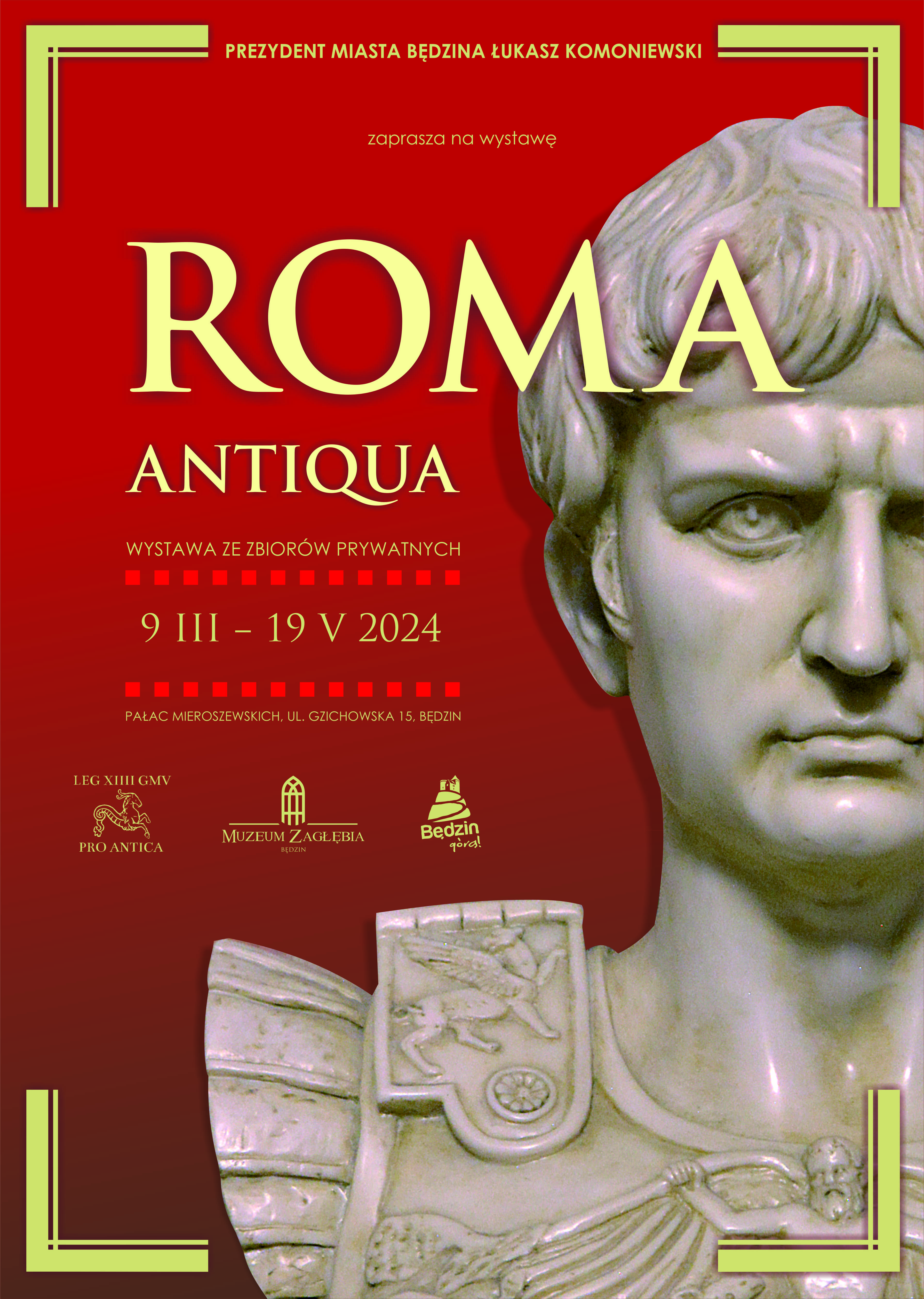 Starożytny Rzym to nie tylko wspaniała kultura, ale i potęga militarna. Trudno więc sobie wyobrazić lepsze miejsce do zaprezentowania wystawy „ROMA ANTIQUA” niż Pałac Mieroszewskich. Tutaj bowiem, w Sali Balowej, do dziś spoglądają na nas podobizny wybitnych wodzów starożytności: Pompejusza Wielkiego, Scypiona Afrykańskiego, Fabiusza Kunktatora i Hannibala. Na najnowszej ekspozycji będzie można zapoznać się przede wszystkim z rozwiniętą rzymską wojskowością, ale nie zabraknie też miejsca dla innych sfer, takich jak kultura i religia. Wszystko to przy wykorzystaniu figurek modelarskich, dioram, rekonstrukcji oraz autentycznych eksponatów z epoki, pochodzących z prywatnej kolekcji.